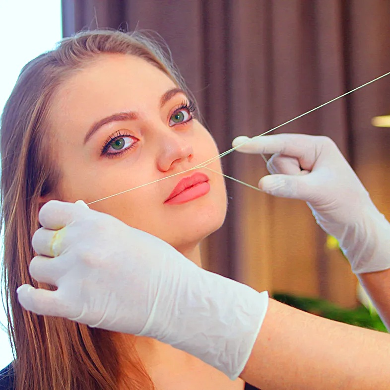 • Achieve the perfect shape for your eyebrows with our expert threading services. Get rid of unwanted hair and achieve a flawless finish on your lips with our threading services
